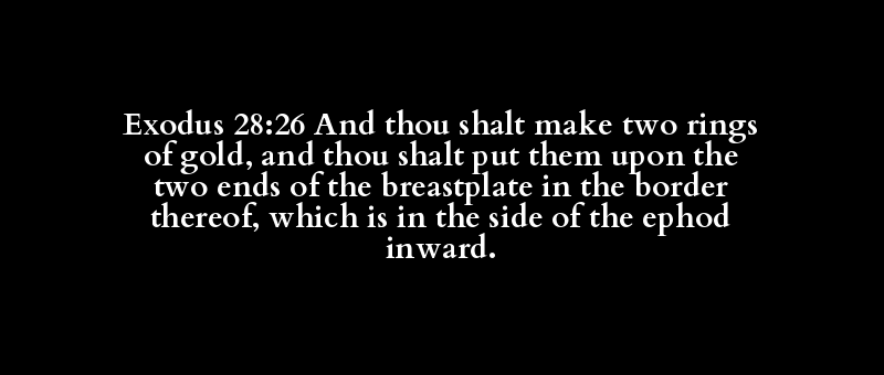 Exodus 28:26 And thou shalt make two rings of gold, and thou shalt put them upon the two ends of the breastplate in the border thereof, which is in the side of the ephod inward.