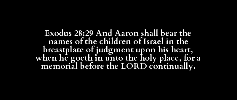 Exodus 28:29 And Aaron shall bear the names of the children of Israel in the breastplate of judgment upon his heart, when he goeth in unto the holy place, for a memorial before the LORD continually.