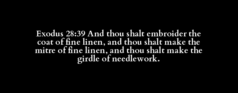 Exodus 28:39 And thou shalt embroider the coat of fine linen, and thou shalt make the mitre of fine linen, and thou shalt make the girdle of needlework.