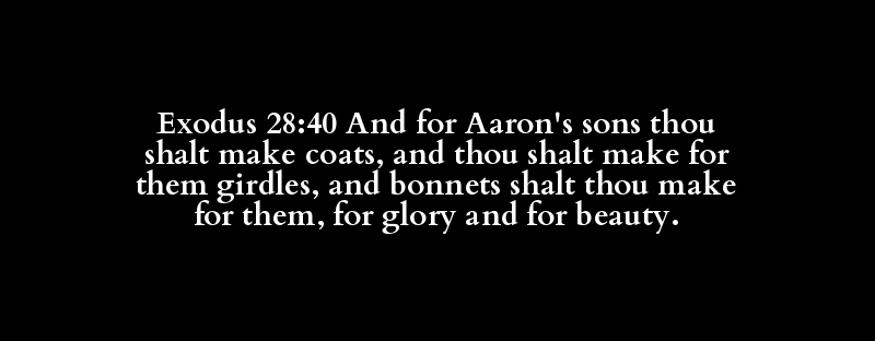 Exodus 28:40 And for Aaron's sons thou shalt make coats, and thou shalt make for them girdles, and bonnets shalt thou make for them, for glory and for beauty.