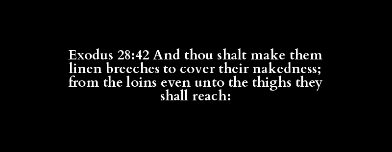 Exodus 28:42 And thou shalt make them linen breeches to cover their nakedness; from the loins even unto the thighs they shall reach: