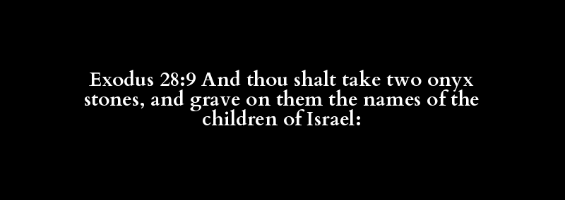 Exodus 28:9 And thou shalt take two onyx stones, and grave on them the names of the children of Israel: