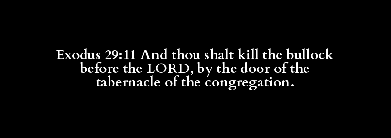 Exodus 29:11 And thou shalt kill the bullock before the LORD, by the door of the tabernacle of the congregation.