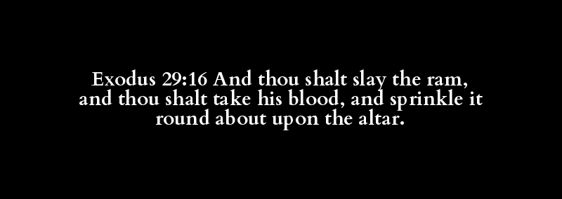 Exodus 29:16 And thou shalt slay the ram, and thou shalt take his blood, and sprinkle it round about upon the altar.