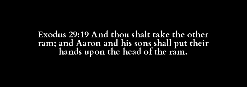 Exodus 29:19 And thou shalt take the other ram; and Aaron and his sons shall put their hands upon the head of the ram.