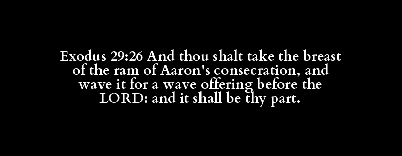 Exodus 29:26 And thou shalt take the breast of the ram of Aaron's consecration, and wave it for a wave offering before the LORD: and it shall be thy part.