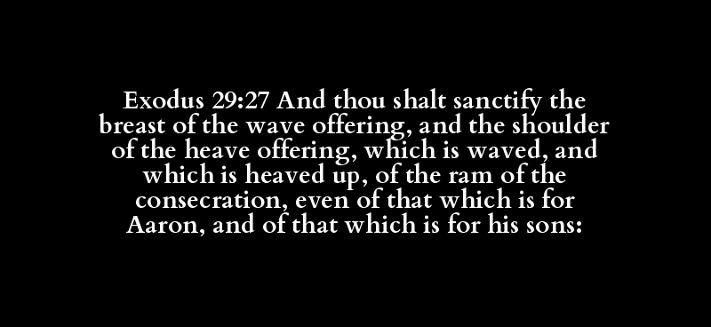 Exodus 29:27 And thou shalt sanctify the breast of the wave offering, and the shoulder of the heave offering, which is waved, and which is heaved up, of the ram of the consecration, even of that which is for Aaron, and of that which is for his sons: