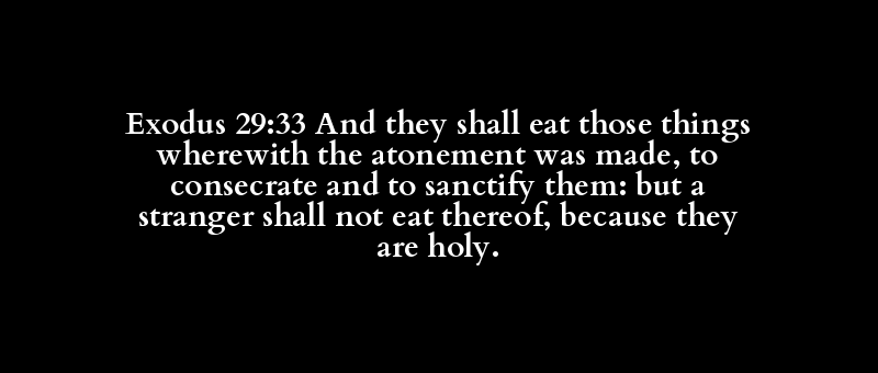 Exodus 29:33 And they shall eat those things wherewith the atonement was made, to consecrate and to sanctify them: but a stranger shall not eat thereof, because they are holy.
