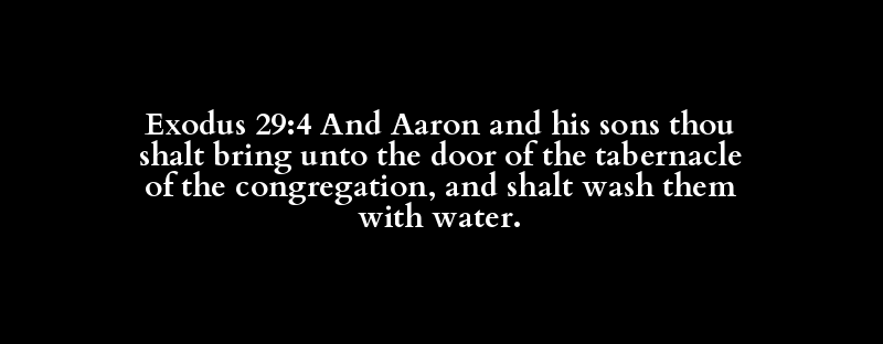 Exodus 29:4 And Aaron and his sons thou shalt bring unto the door of the tabernacle of the congregation, and shalt wash them with water.