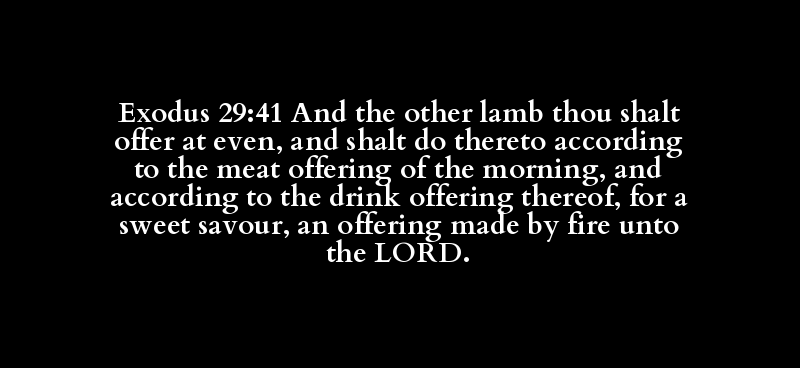 Exodus 29:41 And the other lamb thou shalt offer at even, and shalt do thereto according to the meat offering of the morning, and according to the drink offering thereof, for a sweet savour, an offering made by fire unto the LORD.