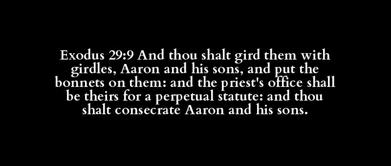 Exodus 29:9 And thou shalt gird them with girdles, Aaron and his sons, and put the bonnets on them: and the priest's office shall be theirs for a perpetual statute: and thou shalt consecrate Aaron and his sons.