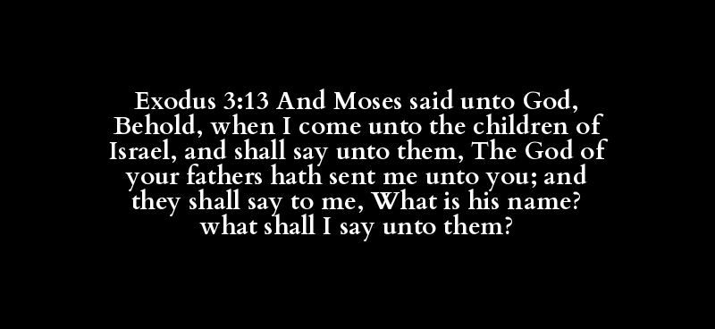 Exodus 3:13 And Moses said unto God, Behold, when I come unto the children of Israel, and shall say unto them, The God of your fathers hath sent me unto you; and they shall say to me, What is his name? what shall I say unto them?