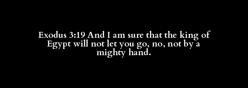 Exodus 3:19 And I am sure that the king of Egypt will not let you go, no, not by a mighty hand.