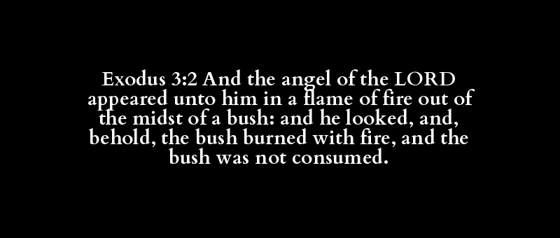 Exodus 3:2 And the angel of the LORD appeared unto him in a flame of fire out of the midst of a bush: and he looked, and, behold, the bush burned with fire, and the bush was not consumed.