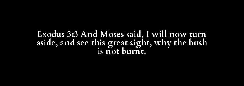 Exodus 3:3 And Moses said, I will now turn aside, and see this great sight, why the bush is not burnt.