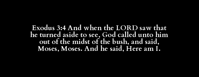 Exodus 3:4 And when the LORD saw that he turned aside to see, God called unto him out of the midst of the bush, and said, Moses, Moses. And he said, Here am I.