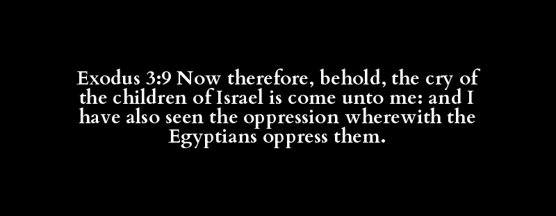 Exodus 3:9 Now therefore, behold, the cry of the children of Israel is come unto me: and I have also seen the oppression wherewith the Egyptians oppress them.
