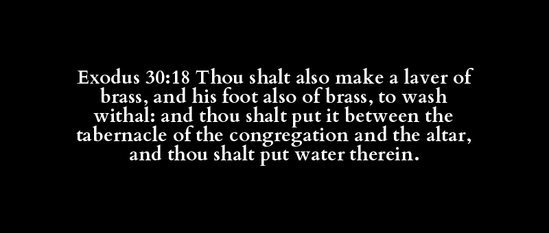 Exodus 30:18 Thou shalt also make a laver of brass, and his foot also of brass, to wash withal: and thou shalt put it between the tabernacle of the congregation and the altar, and thou shalt put water therein.
