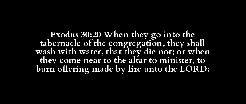 Exodus 30:20 When they go into the tabernacle of the congregation, they shall wash with water, that they die not; or when they come near to the altar to minister, to burn offering made by fire unto the LORD: