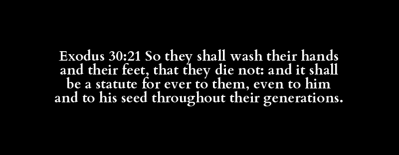 Exodus 30:21 So they shall wash their hands and their feet, that they die not: and it shall be a statute for ever to them, even to him and to his seed throughout their generations.