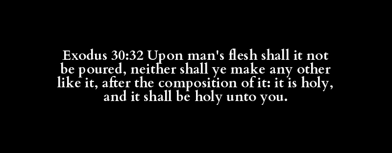 Exodus 30:32 Upon man's flesh shall it not be poured, neither shall ye make any other like it, after the composition of it: it is holy, and it shall be holy unto you.