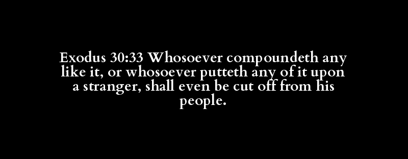 Exodus 30:33 Whosoever compoundeth any like it, or whosoever putteth any of it upon a stranger, shall even be cut off from his people.
