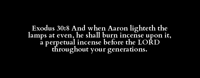 Exodus 30:8 And when Aaron lighteth the lamps at even, he shall burn incense upon it, a perpetual incense before the LORD throughout your generations.