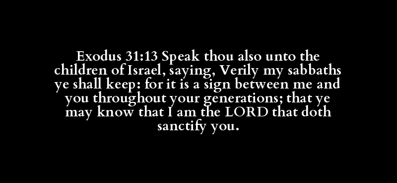 Exodus 31:13 Speak thou also unto the children of Israel, saying, Verily my sabbaths ye shall keep: for it is a sign between me and you throughout your generations; that ye may know that I am the LORD that doth sanctify you.