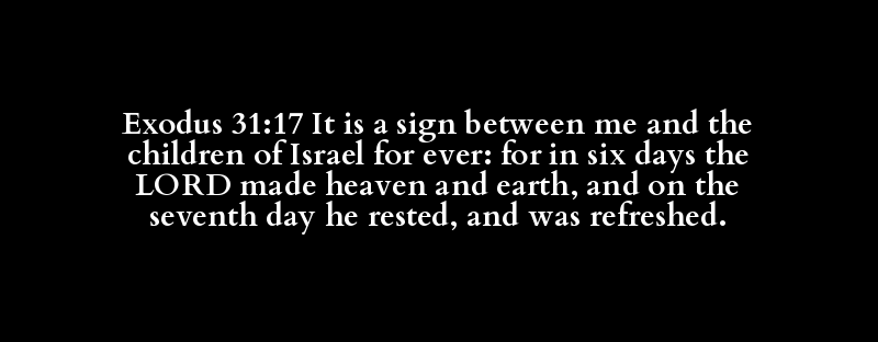 Exodus 31:17 It is a sign between me and the children of Israel for ever: for in six days the LORD made heaven and earth, and on the seventh day he rested, and was refreshed.