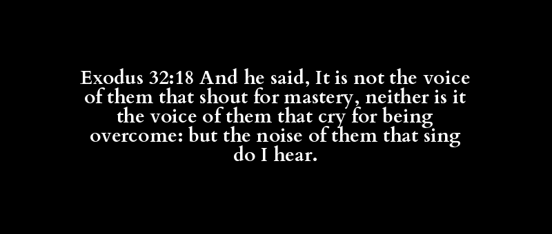 Exodus 32:18 And he said, It is not the voice of them that shout for mastery, neither is it the voice of them that cry for being overcome: but the noise of them that sing do I hear.