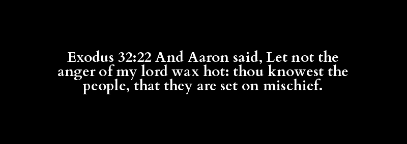 Exodus 32:22 And Aaron said, Let not the anger of my lord wax hot: thou knowest the people, that they are set on mischief.