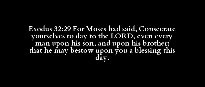 Exodus 32:29 For Moses had said, Consecrate yourselves to day to the LORD, even every man upon his son, and upon his brother; that he may bestow upon you a blessing this day.