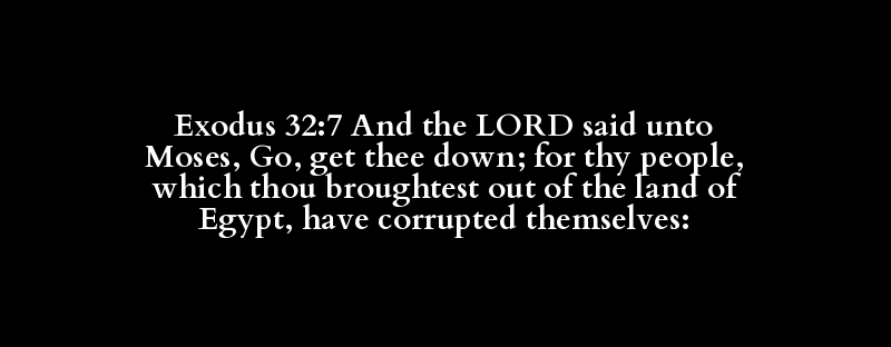 Exodus 32:7 And the LORD said unto Moses, Go, get thee down; for thy people, which thou broughtest out of the land of Egypt, have corrupted themselves: