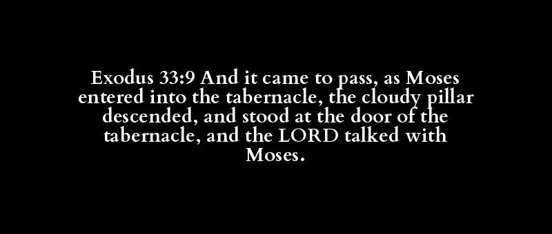Exodus 33:9 And it came to pass, as Moses entered into the tabernacle, the cloudy pillar descended, and stood at the door of the tabernacle, and the LORD talked with Moses.