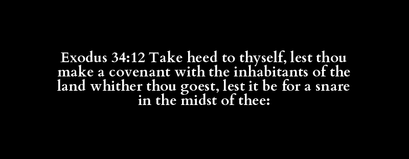 Exodus 34:12 Take heed to thyself, lest thou make a covenant with the inhabitants of the land whither thou goest, lest it be for a snare in the midst of thee: