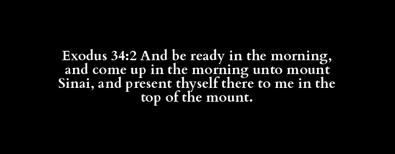Exodus 34:2 And be ready in the morning, and come up in the morning unto mount Sinai, and present thyself there to me in the top of the mount.