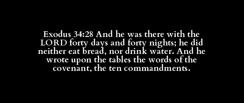 Exodus 34:28 And he was there with the LORD forty days and forty nights; he did neither eat bread, nor drink water. And he wrote upon the tables the words of the covenant, the ten commandments.