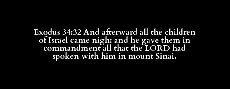 Exodus 34:32 And afterward all the children of Israel came nigh: and he gave them in commandment all that the LORD had spoken with him in mount Sinai.