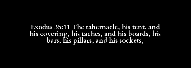 Exodus 35:11 The tabernacle, his tent, and his covering, his taches, and his boards, his bars, his pillars, and his sockets,