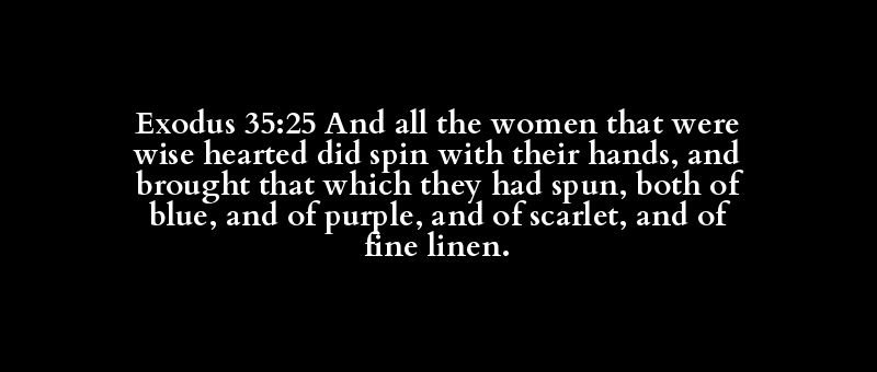 Exodus 35:25 And all the women that were wise hearted did spin with their hands, and brought that which they had spun, both of blue, and of purple, and of scarlet, and of fine linen.