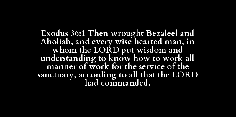 Exodus 36:1 Then wrought Bezaleel and Aholiab, and every wise hearted man, in whom the LORD put wisdom and understanding to know how to work all manner of work for the service of the sanctuary, according to all that the LORD had commanded.
