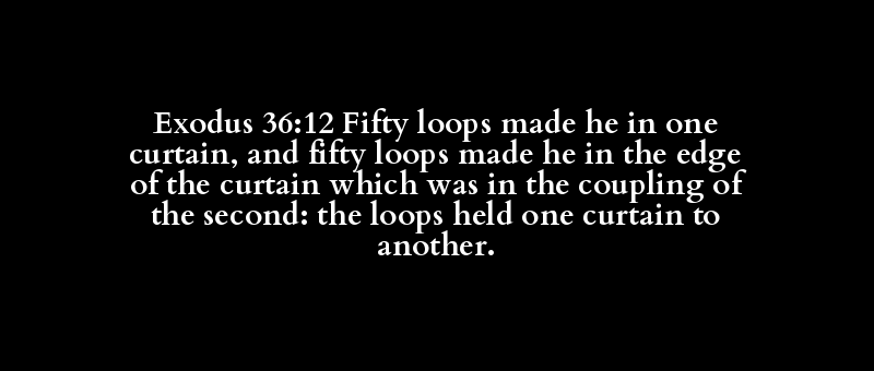 Exodus 36:12 Fifty loops made he in one curtain, and fifty loops made he in the edge of the curtain which was in the coupling of the second: the loops held one curtain to another.