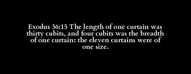 Exodus 36:15 The length of one curtain was thirty cubits, and four cubits was the breadth of one curtain: the eleven curtains were of one size.