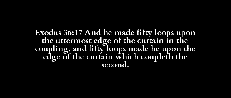 Exodus 36:17 And he made fifty loops upon the uttermost edge of the curtain in the coupling, and fifty loops made he upon the edge of the curtain which coupleth the second.