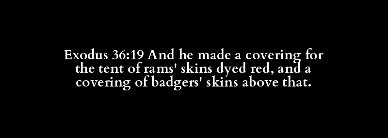 Exodus 36:19 And he made a covering for the tent of rams' skins dyed red, and a covering of badgers' skins above that.