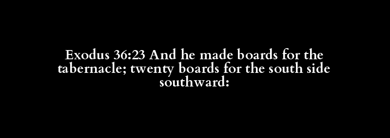 Exodus 36:23 And he made boards for the tabernacle; twenty boards for the south side southward: