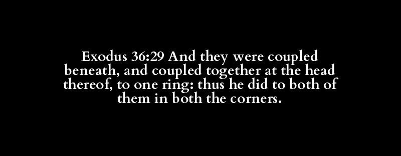 Exodus 36:29 And they were coupled beneath, and coupled together at the head thereof, to one ring: thus he did to both of them in both the corners.