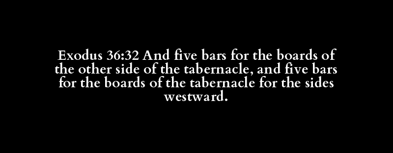 | חָמֵשׁ | בְּרִיחַ | קֶרֶשׁ | שֵׁנִי | צֵלָע | מִשְׁכָּן | חָמֵשׁ | בְּרִיחַ | קֶרֶשׁ | מִשְׁכָּן | יְרֵכָה | יָם |