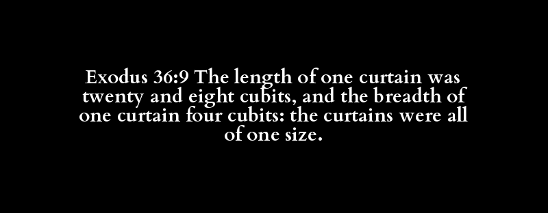 Exodus 36:9 The length of one curtain was twenty and eight cubits, and the breadth of one curtain four cubits: the curtains were all of one size.