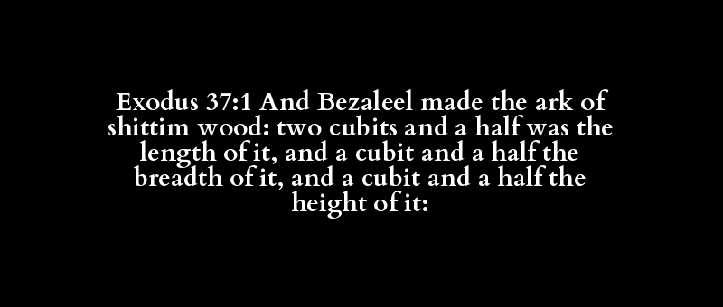 Exodus 37:1 And Bezaleel made the ark of shittim wood: two cubits and a half was the length of it, and a cubit and a half the breadth of it, and a cubit and a half the height of it: